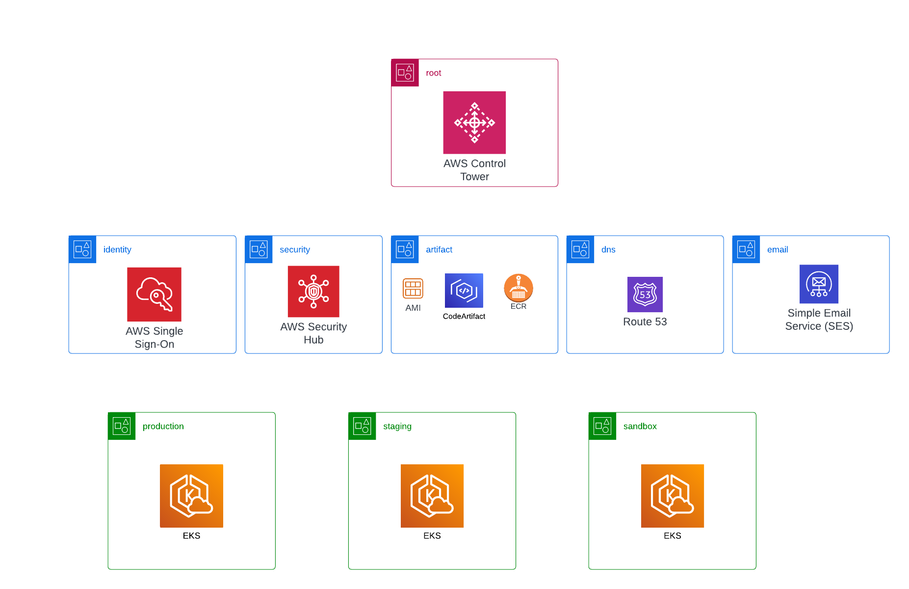 We have separate accounts for each environment: Production, Staging, and Sandbox. The Production account requires no further explanation. The Staging account is meant for testing new application code or trying out new systems/services/technologies that won't disrupt the existing application code. The Sandbox account, on the other hand, is reserved for testing changes to the bottom layers that could potentially disrupt all running application code. This typically involves major upgrades to the Kubernetes cluster, such as K8s itself, ArgoCD, Karpenter, and so on. By having a separate AWS account to experiment with foundational technologies, engineers can conduct tests without the risk of disrupting the workflow of the rest of the company. Sandbox accounts are created temporarily for the duration of the experiments and can be more than one if needed. With this hierarchy of accounts in place, there is no longer a need to maintain separate accounts for each developer/branch.